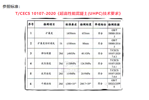1、UHPC強度高,不但早期強度發展快,后期強度更是極高,在一些特種工程中可 替代鋼材和有機聚合物產品,既可保持混凝土體系的完整性,還可降低成本。
